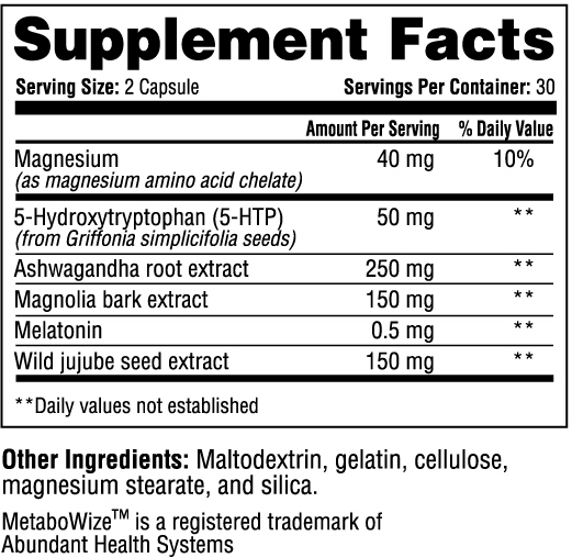 MetaboWize PM is a proprietary evening stress reducing sleep support formula.